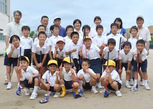 夏の大会に向け猛練習 東西条小スナッグゴルフ