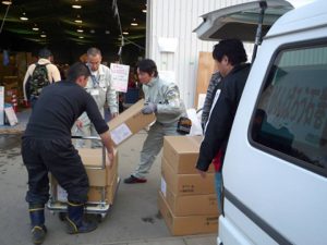 靴下・土のう袋届ける 東広島市社福協