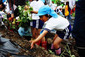 「水やり、草とり頑張るぞー」 幼稚園児とさつまいもの植え付け 東広島ライオンズクラブ