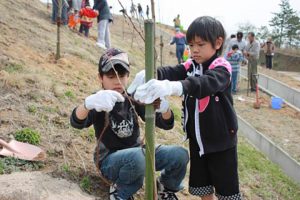 7年後には新たな名所に! 湖畔の里福富に桜120本植樹