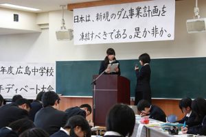 県立広島中2年生がディベート大会 「ことば科」学習の成果を発表