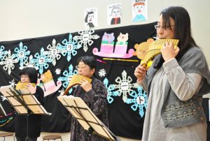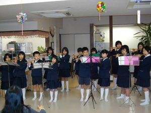 デイサービスセンターで演奏会 高屋西小篠笛クラブ