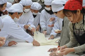 児童と保護者でもちつき 西志和小で総合学習