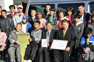 コスモスに福祉車両を寄贈 全国いすゞ自動車関連労働組合連合会