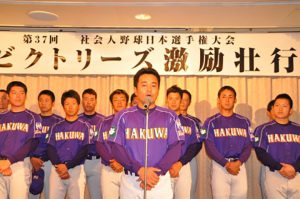 社会人野球「日本選手権大会」 伯和ビクトリーズが壮行会で健闘誓う