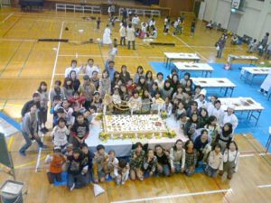楽しみながら特大ケーキ作る 川上小の5年児童と保護者
