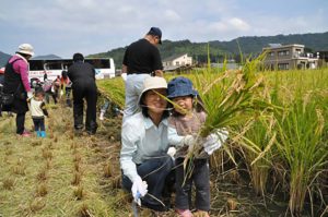 食協の稲刈り体験 親子が米の大切さ学ぶ