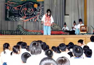 親子で神楽を鑑賞 郷土芸能に触れる 市立豊栄小学校