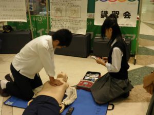 買い物客に心肺蘇生法を指導 東広島消防署南分署