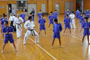 心技一体の教育を 和文化学習で志和中2年生が空手体験
