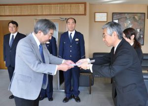 山銀東広島支店が市防犯連合会に寄付