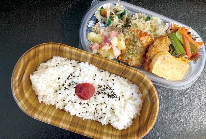 日替わりで用意される総菜をたっぷりと詰め込んだランチボックス。この日はベーコンとチーズの入った卵焼きに、雑魚とちりめんじゃこのサラダなど、どれも手の込んだものばかり。総菜は単品でも購入可能。毎回行くのが楽しみになる😋。
