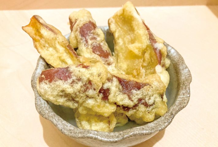 「ねっとり甘~い恋みつ焼きいも天ぷら」 100㌘あたり182円(税込み)