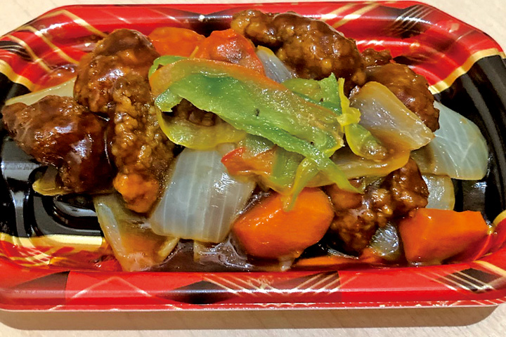 中華メニューの定番「酢豚」。マックスバリュの人気商品「彩り中華弁当」にも入っている。