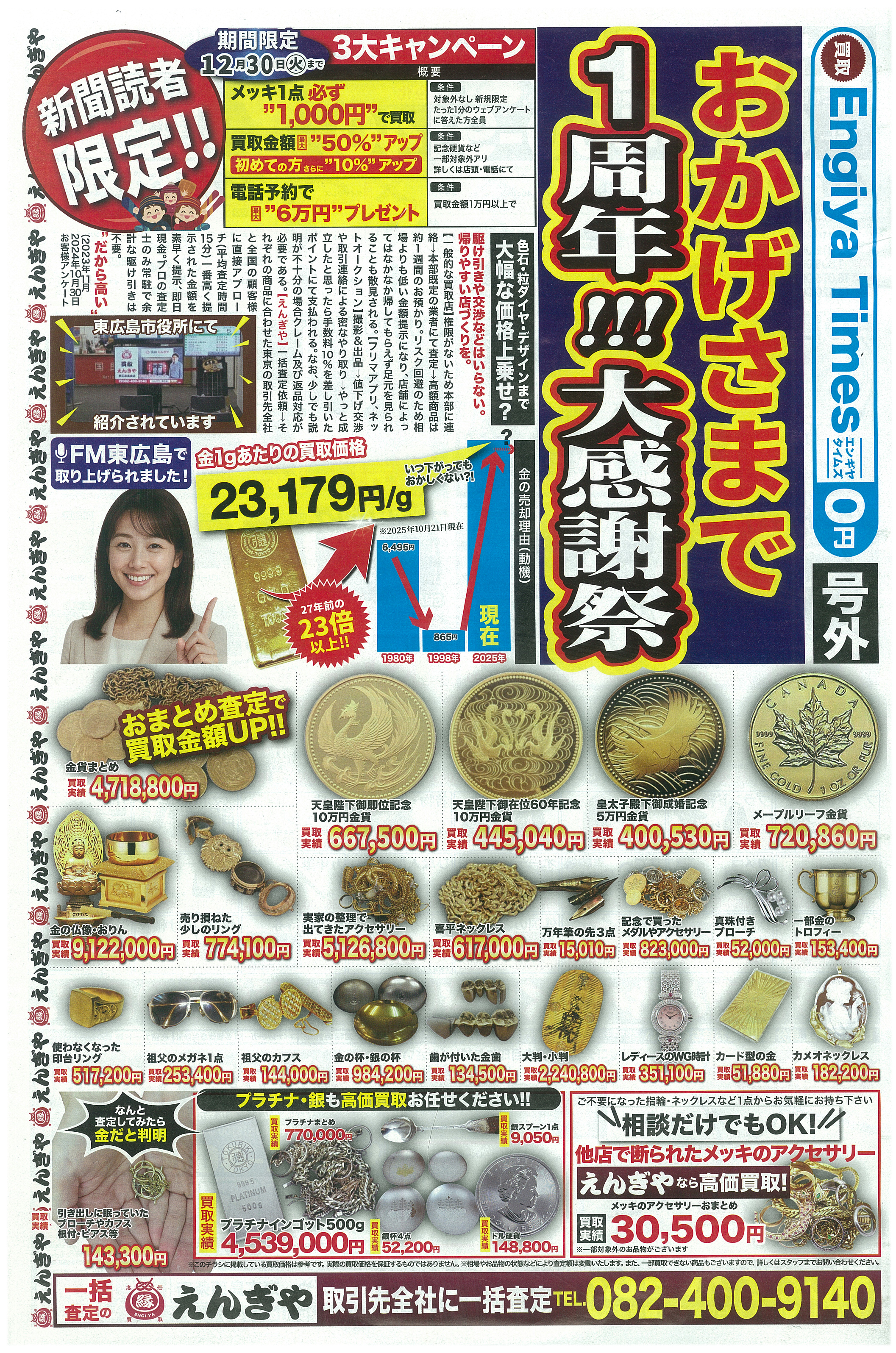 12月30日まで〝3大キャンペーン〟を実施し、メッキ製アクセサリーを1点1000円で買取します。金価格も高騰中で査定額アップのチャンスです。ブランド品や貴金属の査定も幅広く対応しています。