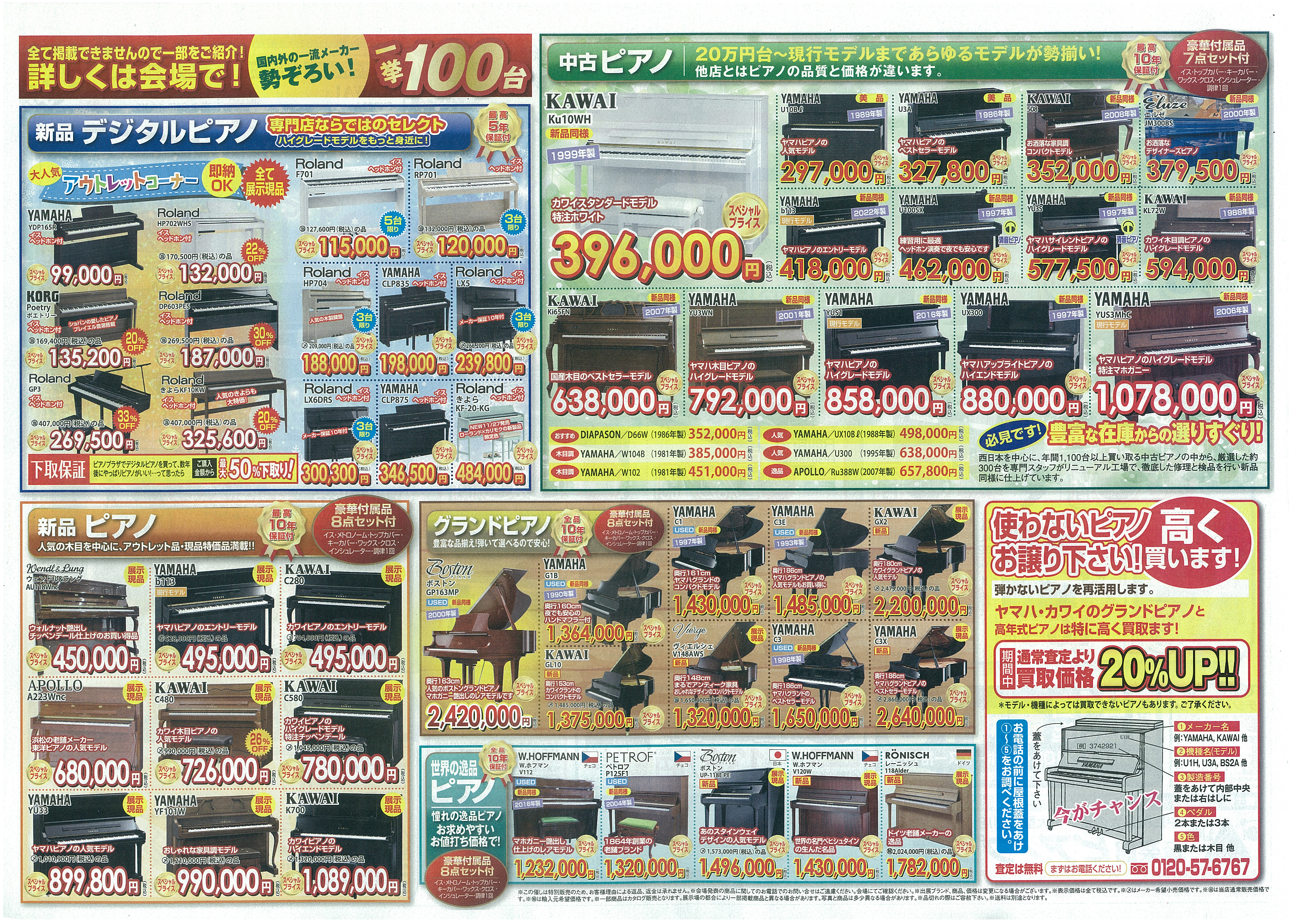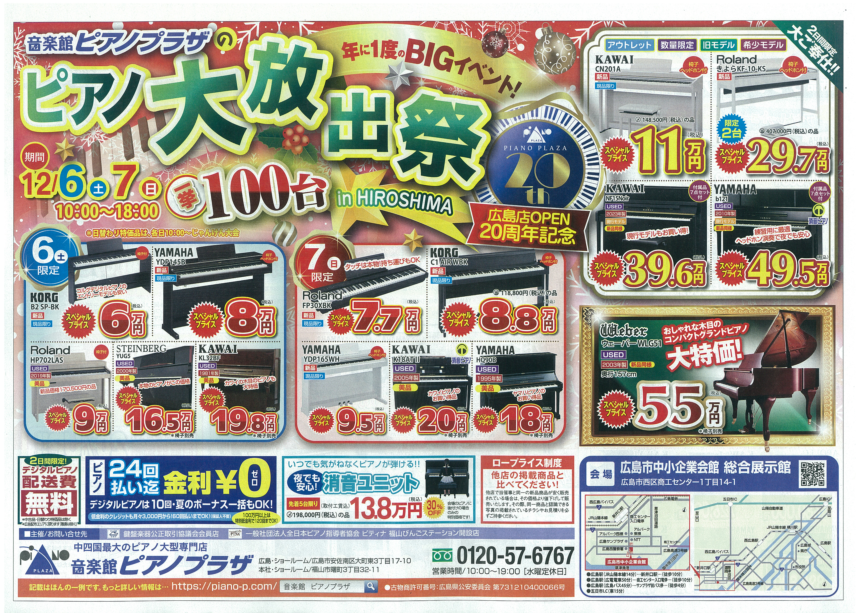 12月6日・7日に「ピアノ大放出祭」を開催します。デジタルからグランドまで約100台が並び、限定特価品も登場します。金利0円特典や買取査定強化もあり、買い替えに最適です。