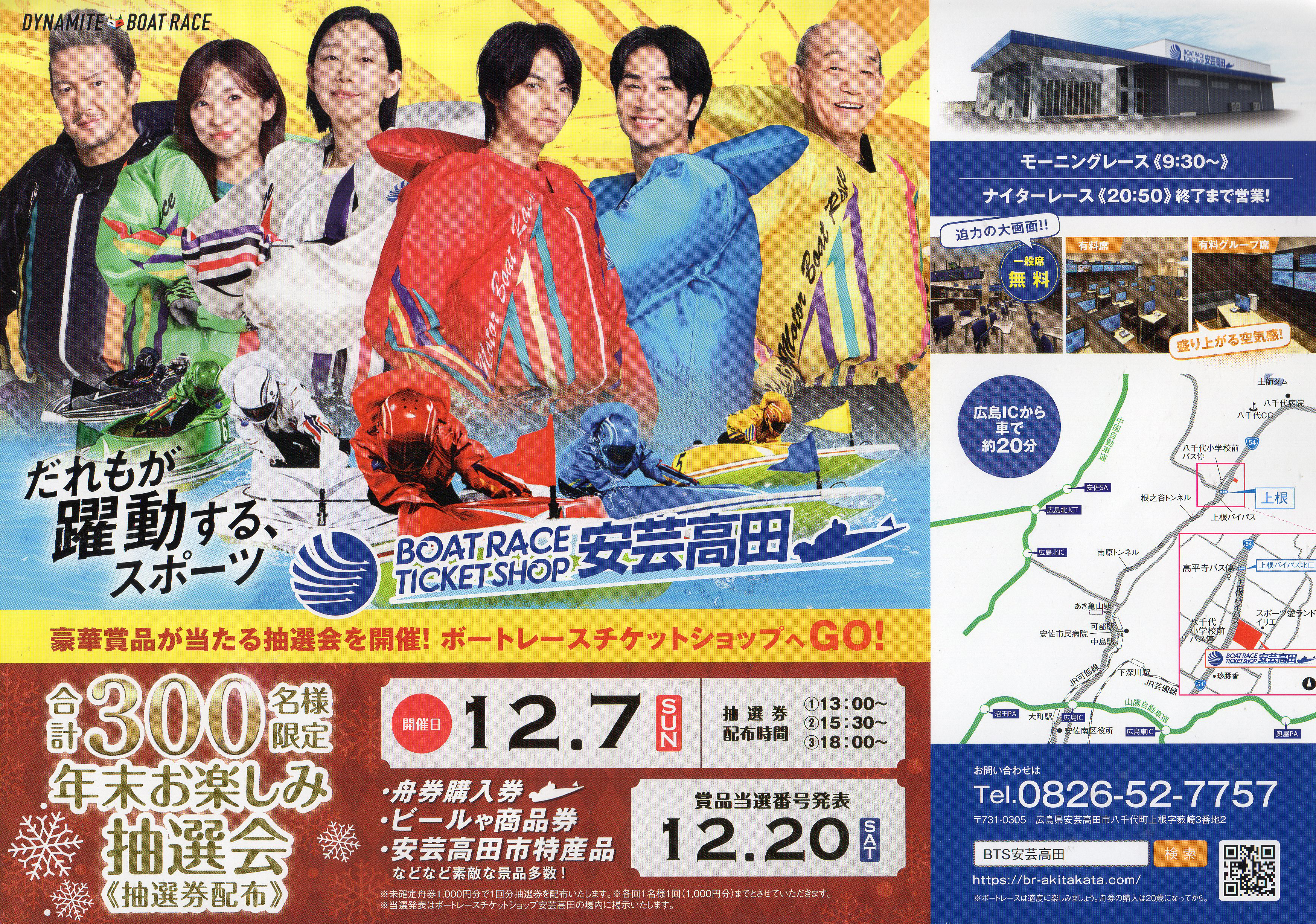 年末お楽しみ抽選会を12月7日に開催します。抽選券は13:00配布、抽選は15:30開始で、ビール券などの景品が当たります。観覧スペースも充実しており、年末の運だめしにぴったりです。