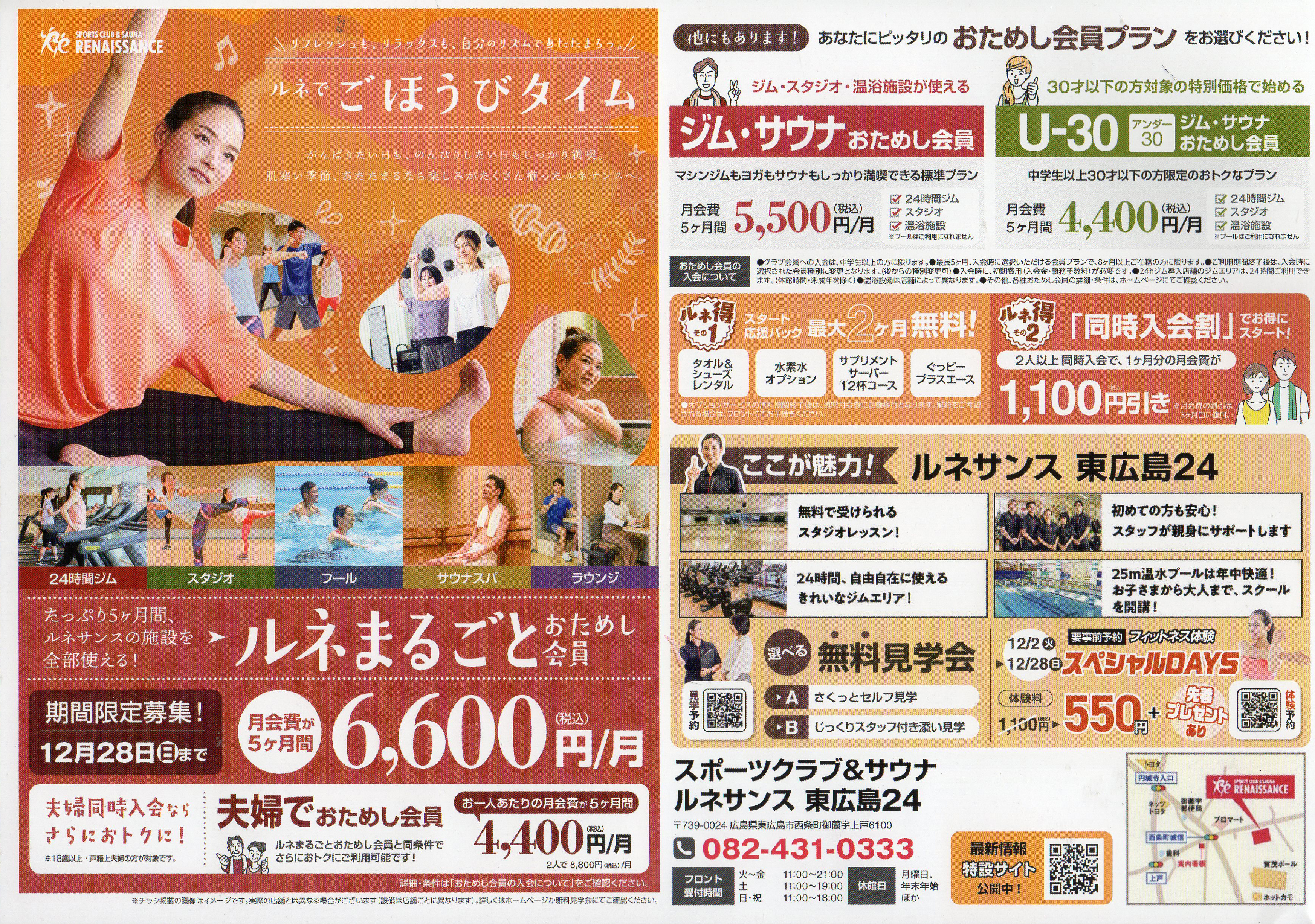冬のおためし会員を受付中です。ジムやサウナなどが24時間使え、U-30会員や夫婦向けなどお得なプランもそろいます。見学会も随時開催しています。