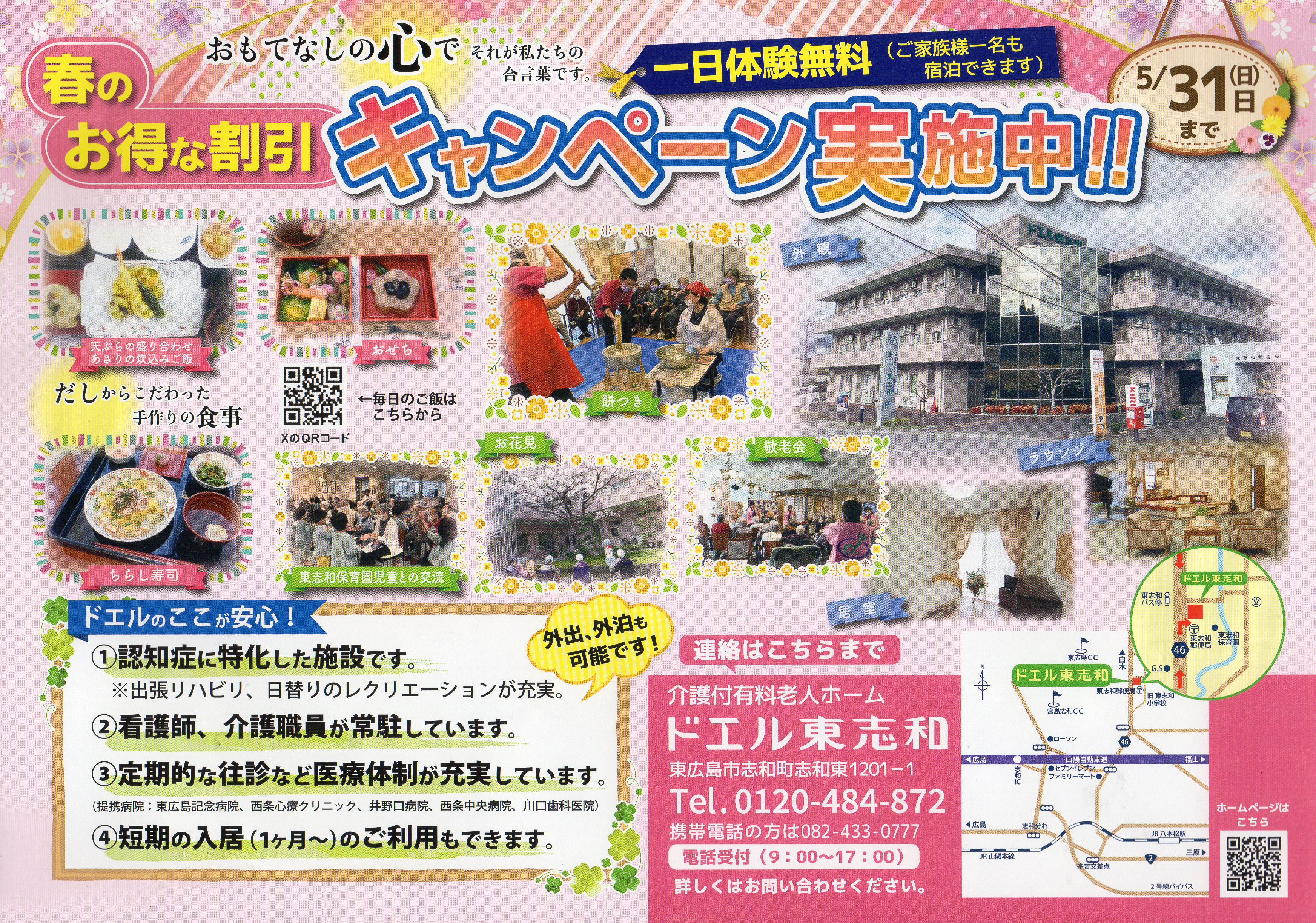 介護付有料老人ホーム、ドエル東志和では春のキャンペーンを実施しています。期間中は一日体験が無料となり、食事や生活環境、スタッフの対応などを実際に確認できます。認知症ケアや医療連携体制も整い、安心して暮らせる環境が魅力。施設選びを検討する方にとって参考になる機会です。