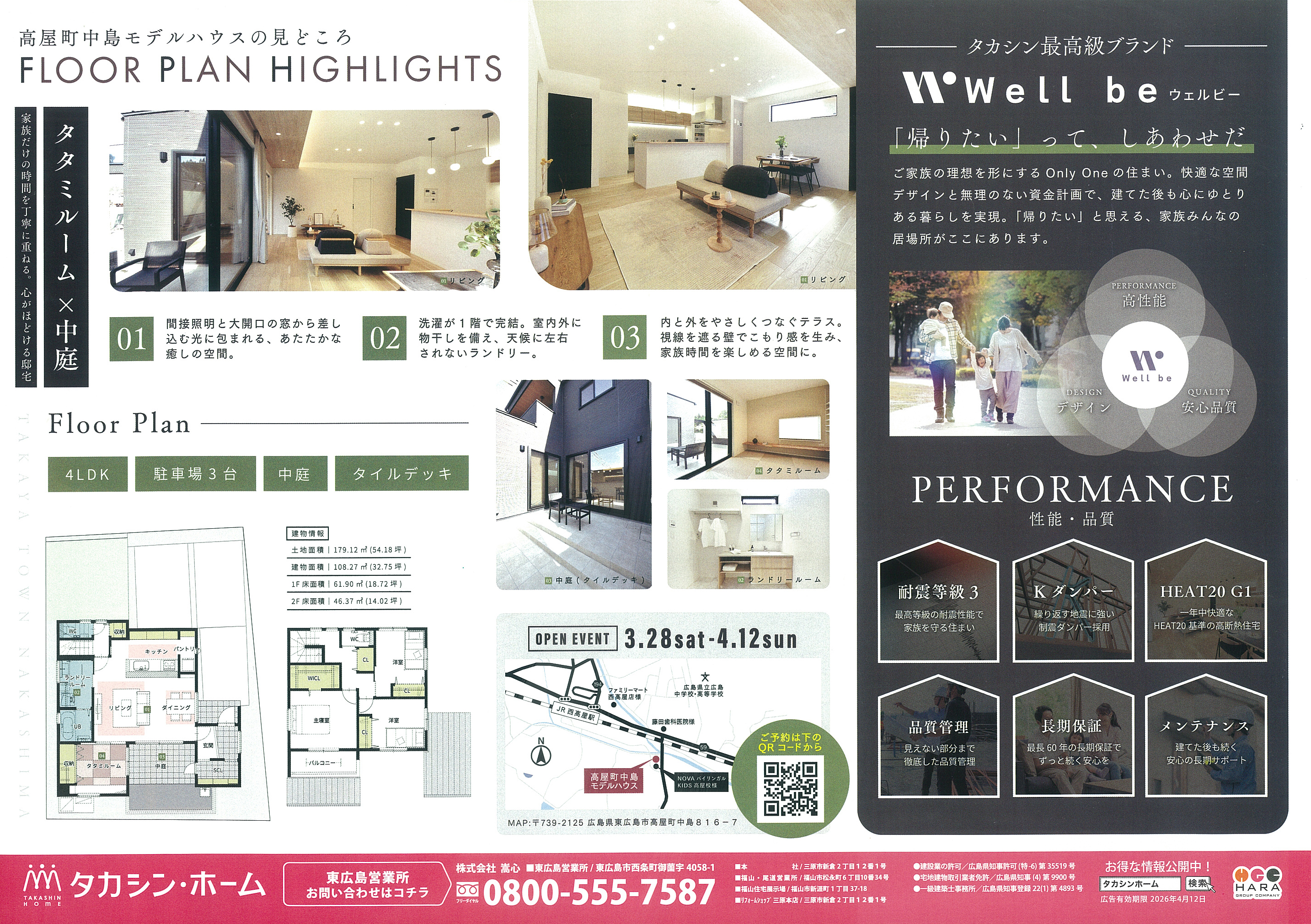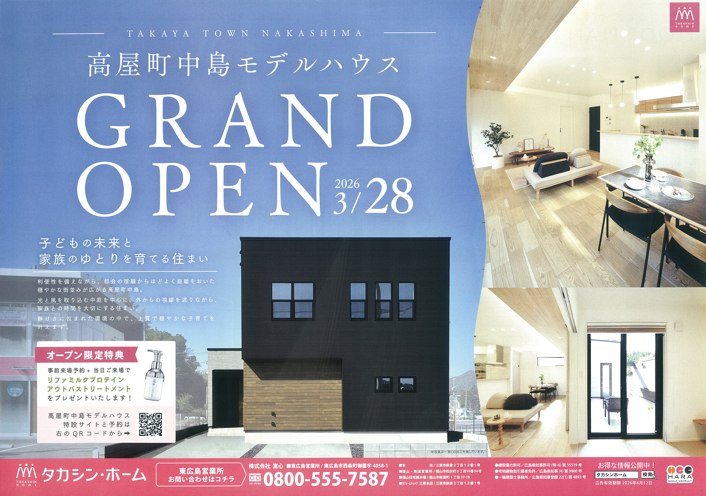 高屋町中島にタカシンホームの新しいモデルハウスがオープンし、期間限定の見学イベントが開催されています。中庭のある開放的なリビングや家事動線を考えた間取りなど、実際の暮らしをイメージしやすい住空間が魅力。家づくりのヒントを体感できる見学会として注目されています。