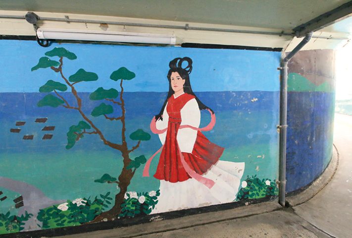 年中会える万葉娘は、安芸津中学校の美術部が描いた壁画でした。