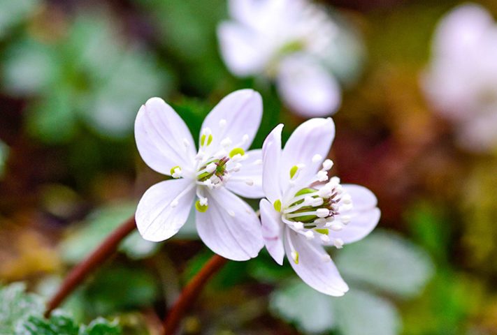 10㌢ほどの茎の先に1㌢ほどの白い花を1輪つけます。白い小さな花は純真無垢(むく)、生命の息吹を感じます。