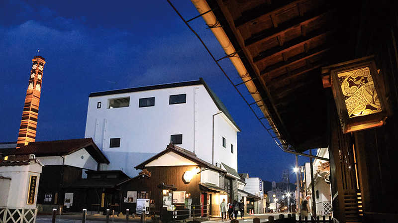 あんどん、れんが煙突、通りの様子が収まる場所を見つけたので、空が青く染まるのを待って撮影しました。