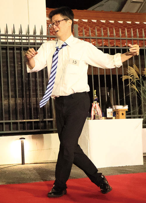 準優勝は地元西条町在住の、しかもFM東広島の森さんでした。酔っぱらったサラリーマンを演じたのですが、長い手足をフル活用した迫力ある演技が注目を集めました。