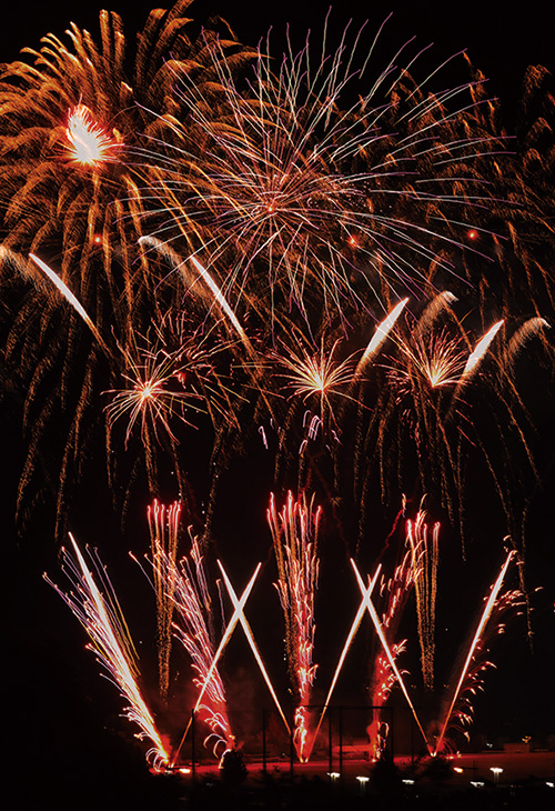 キャンパスに近い山の斜面にカメラをセットして待機したのですが、山から吹き降ろす風が予想外に冷たくて、寒さに震えながらの撮影となりました。しかし花火は例年になく数も多く、大玉も増えていて、季節外れの花火を堪能できました。