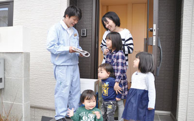 取材に訪れたのは西条町に住む松葉さん宅。午後5時、生協の佐々木さんが運転するトラックが家に着くと、子どもたちが出迎える。妊娠を機にサービスを利用した松葉さん。「国産にこだわった商品が多いので安心。焼くだけ、揚げるだけ、温めるだけでおいしく食べられる商品が多いので、時間がない時にとても便利。留守の時には保冷剤や冷凍蓄冷剤で保冷してあるので心づかいもうれしい」と話す。おすすめは『いろいろ使える近海真アジの3枚おろし』。育ち盛りの子どもらは「国産チキンナゲットが好き」と笑顔で答えた。