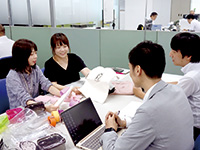 「コラボ商品に限らずダイソーの魅力は価格が買いやすいところ。でも、材質とデザインが良くなければ100円でも買っていただけません。安いだけでなく、おしゃれ、かわいいという内容で選んでいただけるような商品を作っていきたい」と亀田さん。ニーズやトレンドは、現場やSNS、海外に仕入れに行った際に現地調査をしてつかむ。「チームで情報やアイデアを出し合い、会話をしながら企画をまとめます。とっても楽しいですね」と松本さん。ミーティングでは「それいいね!」「こんなのどう?」と楽しそうな声が飛び交う。