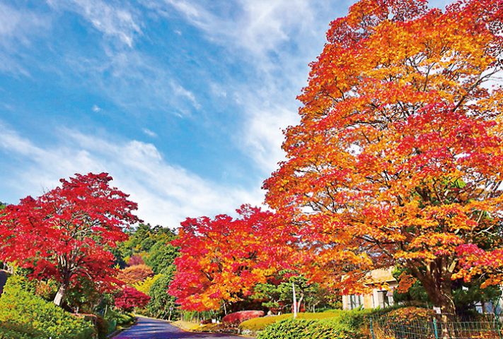 県内最大級の大きさを誇るオオモミジの他、美しく紅葉する樹木が多く植えられており四季を通じて楽しめる。10月21日(土)~11月12日(日)は「もみじ祭り2023」を開催。見頃は11月上旬~11月中旬。