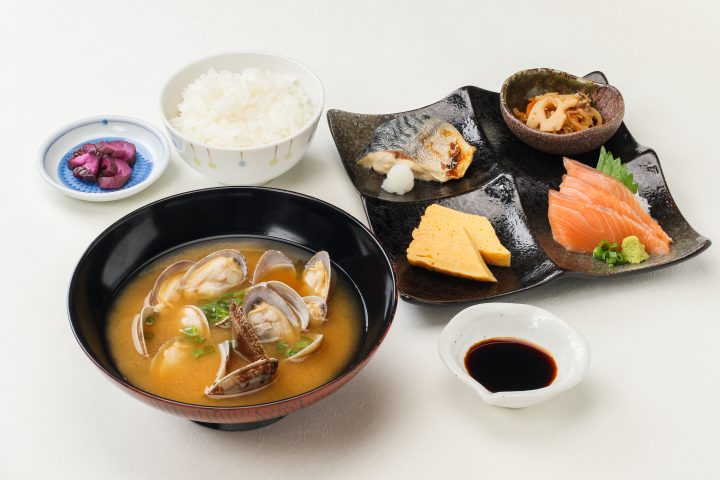 あさりの旨みたっぷりの自家製貝汁に刺身、焼魚など海の幸を味わえる一品です。
