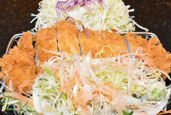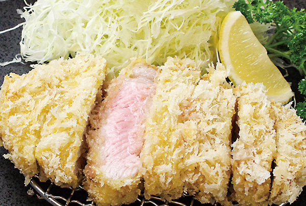 きめ細かくやわらかな肉質で風味豊かな甘味の上州産とことん豚を使用。「ほんのりピンク色」が同店のおいしいロースかつの印。シャキシャキふわふわな朝採れ千切りキャベツはおかわり可。イチオシメニューはとことん豚ロースかつ膳(中、1,958円)。