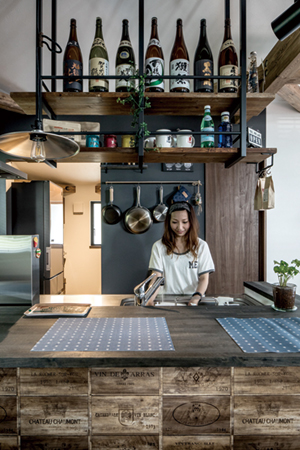 こだわり満載のキッチンは、まるで外国のバーを訪れたような仕上がりに。これが規格住宅とは思えないオリジナリティに富んだデザインになっている。