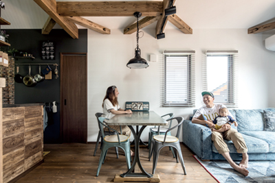 理想のマイホームの形はひとそれぞれ。そんなマイホームの想いを実現したのはアウトドアを楽しみ、アメリカンテイストのスタイルにこだわったF様夫婦(東広島市)。夢を叶えたのは一般の注文住宅ではなく、企画住宅シリーズの「BinO」。