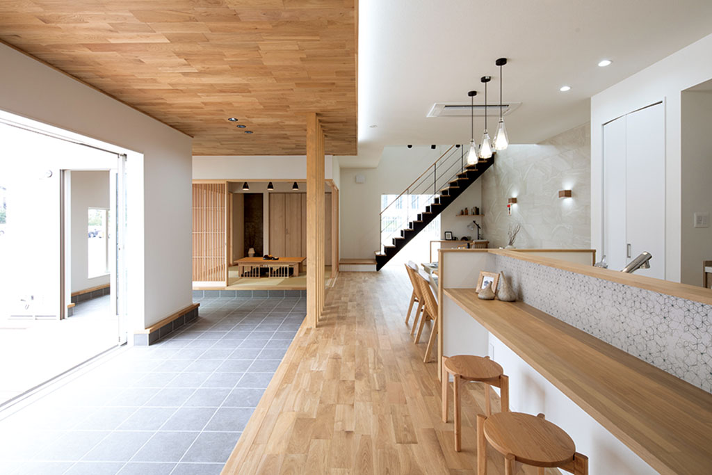 地域のコミュニティの場として活用していくつもりです。地域のカルチャー教室や人が集い笑顔こぼれる空間を提供していきたい。イベントなどに利用できるように水や電気も利用が出来るほか、玄関をフラット型にしているのも特徴です。もちろん展示場なので、住宅としての間取りや動線、収納スペースなどを家づくりの参考として見ていただきたい。IOT部分や全室の空調、災害スマートハウス、太陽光、蓄電池などに注目してもらえると面白いと思います。