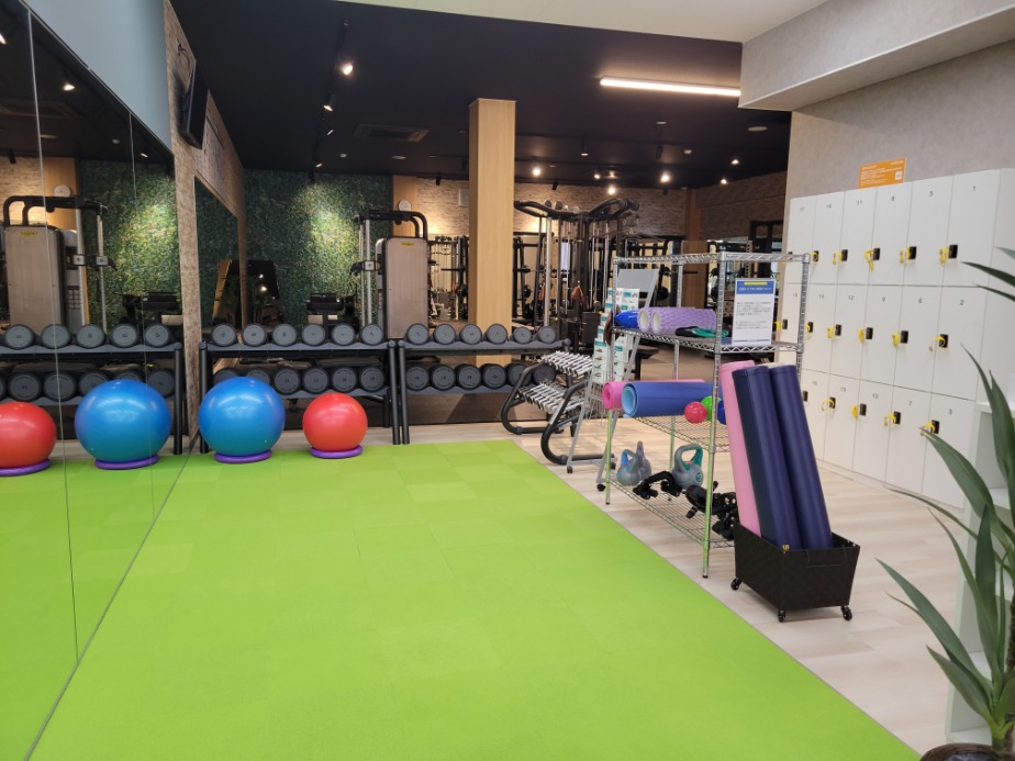 他にも自重エリアという、スペース。こちらではストレッチポールやバランスボールを使って