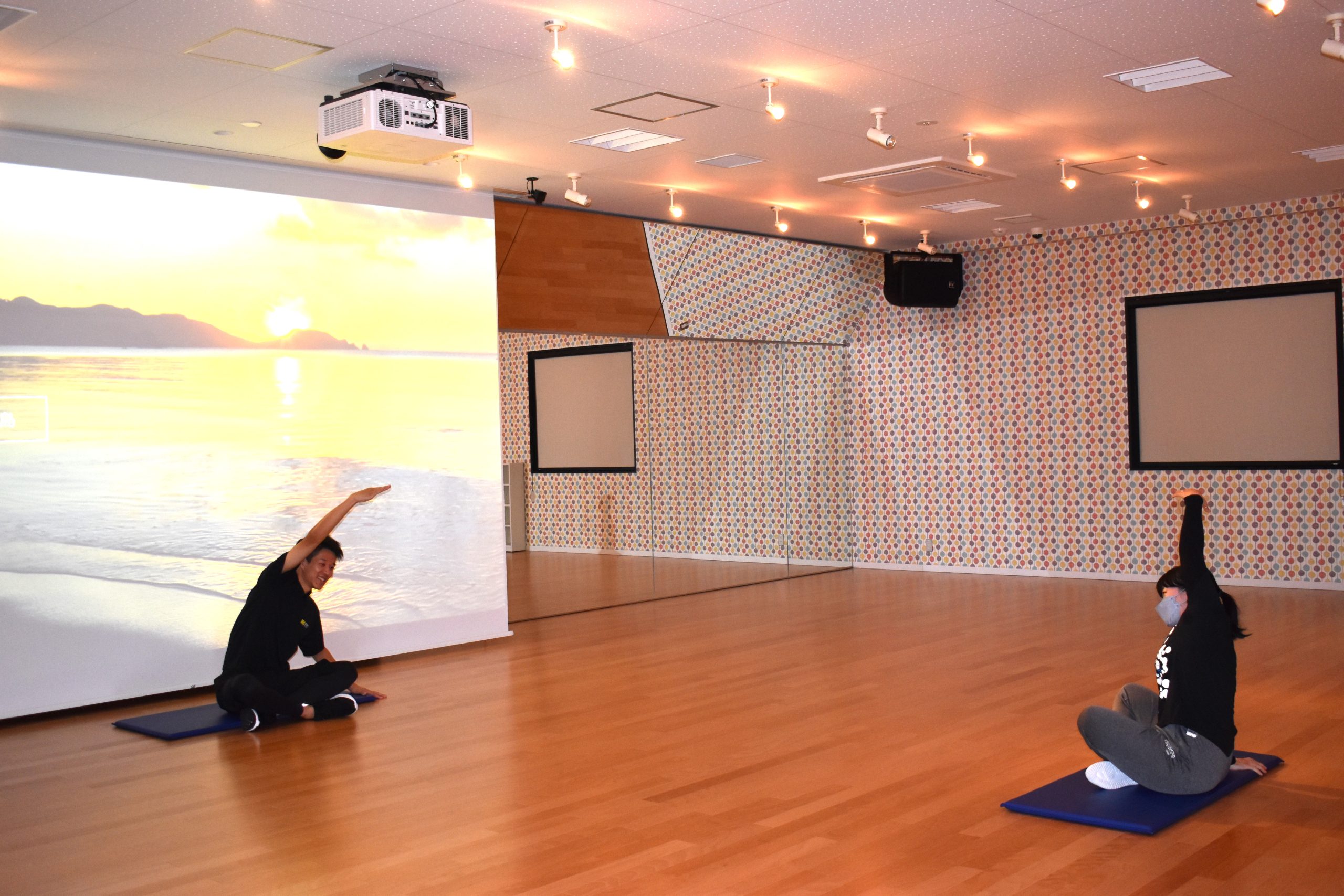 こちらはシアターヨガです。巨大スクリーンに映像を流して