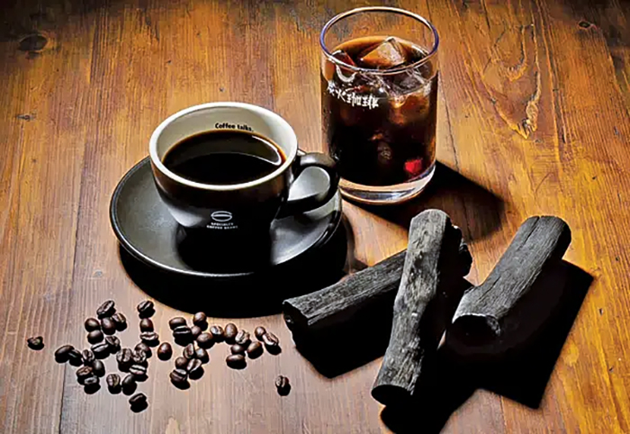 一番人気は「炭火珈琲」(単品610円)。良質な国産備長炭を使用し、豆を焙煎しているため、香ばしく濃厚なコクと苦みがあり、口当たりがまろやか。ティーやソフトドリンクなどコーヒー以外のドリンクも用意。