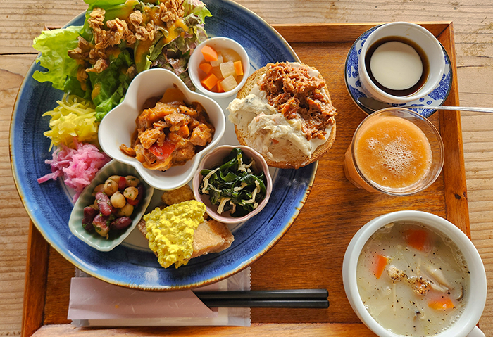 ランチでは野菜のみを使用したヴィーガンスタイルでボリューム満点。栄養や酵素がたっぷりなので罪悪感がなく、食べた後は体に良いことをした気分にもなりました。(東原)