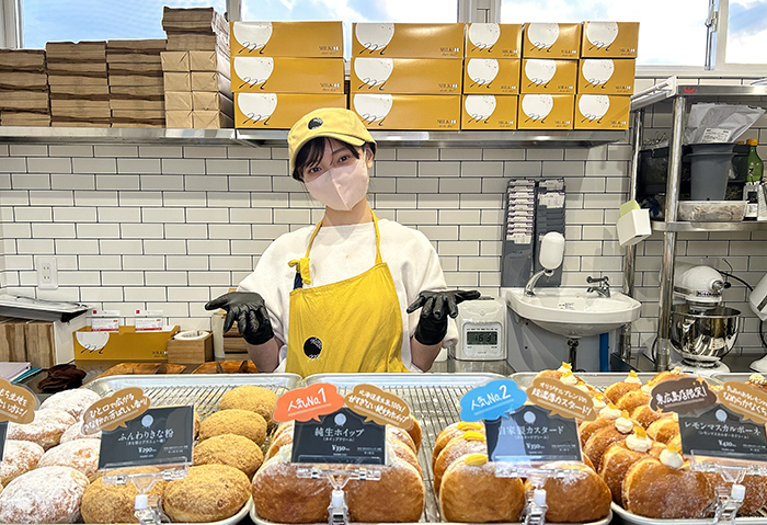同店のドーナツは材料にこだわっており、北海道産をメインに卵とバターをふんだんに使用した生地は、しっとりなめらか。クリームには北海道根釧地区の生乳を使用し、揚げ油は100%こめ油を使っています。