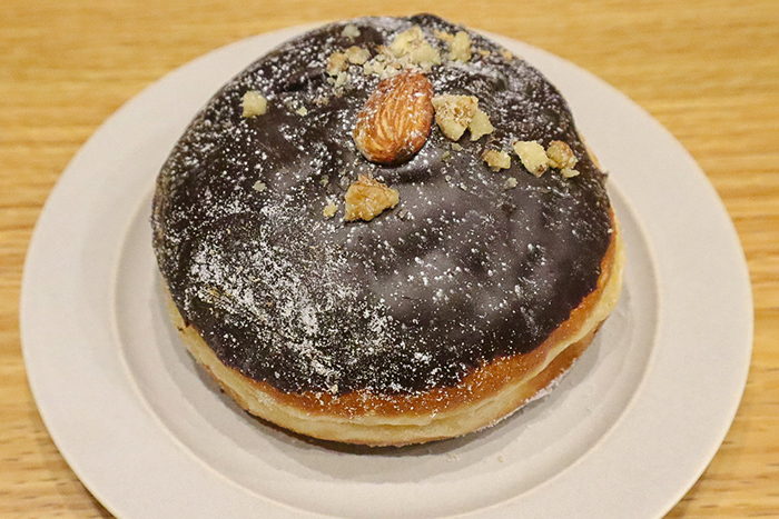 店員さんイチオシ2つ目は、「ショコラナッツ」420円(税込み)。チョコレートでコーティングし、ナッツをトッピング。中にはホイップとチョコのミックスクリーム。ナッツのザクザクとした食感が楽しく、一つで満足度が高い一品。
