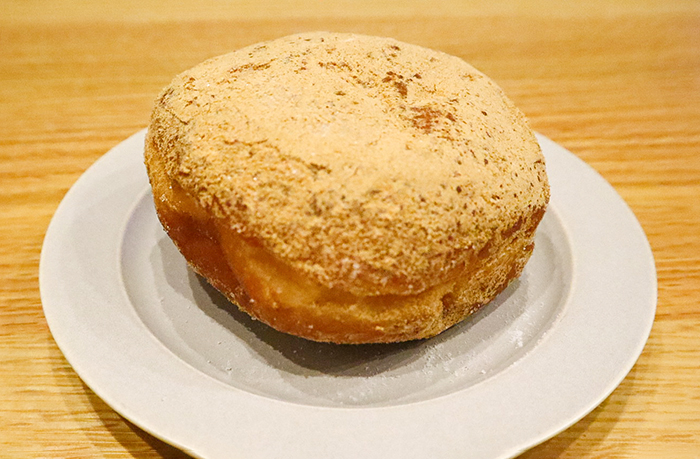 同店の店員さんのイチオシ1つ目は、「ふんわりきな粉」290円(税込み)。きな粉とグラニュー糖をまぶした、クリームの入っていないドーナッツ。きな粉の香ばしさが感じられ、和の雰囲気を楽しめます。緑茶やほうじ茶とも相性が良さそう。