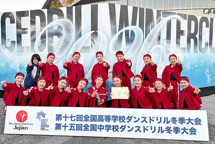 近大附属広島高校・中学校東広島校ダンス部は、1月10・11日に東京都調布市の京王アリーナTOKYOで開催された「Dance Drill Winter Cup 2026」に出場し、中学生チームがHIPHOP女子部門Medium編成で優勝、高校生チームが同部門で準優勝を果たした。