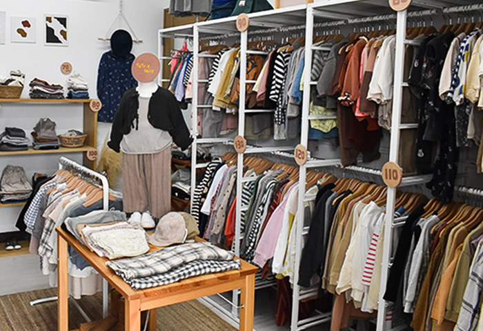 新生児から160㌢までの子ども服の古着があり、ZARAやマーキーズ、人気の韓国子ども服など、国内はもちろん海外のブランドまで幅広く取り扱っています。トップスやアウター、シューズなど豊富なアイテムがあって、トータルコーディネートできます。迷ったときはオーナーに相談してみてください。コーディネートしてもらえます。