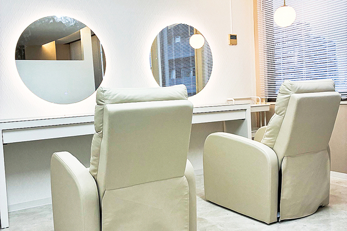 完全予約制で、店内にはTVモニターやエアコンが完備。快適に過ごせる空間で、寝不足や二日酔い、肌の不調を感じている方にもおすすめです。