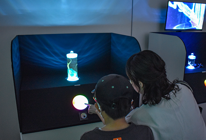 新登場の光ラボを体験する来館者ら