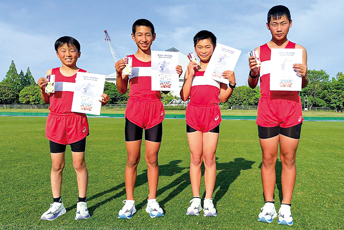 4人は「緊張したが、スピードに乗れて優勝し気分は最高!」と、口をそろえ笑顔で振り返った。花守代表理事・総合コーチは「プレッシャーがあったと思うが、よく頑張った。7月の日清食品カップ県小学生陸上競技交流大会で優勝し、全国大会で頑張ってほしい」と目を細めエールを送った。 (山北)