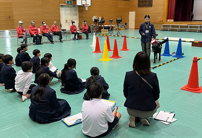 東広島ウエストライオンズクラブは11月5日、造賀小学校で3・4年生を対象に盲導犬授業を行いました。
